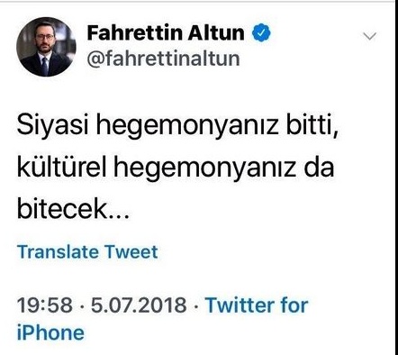 “Siyasi hegemonyanız bitti, kültürel hegemonyanız da bitecek.”