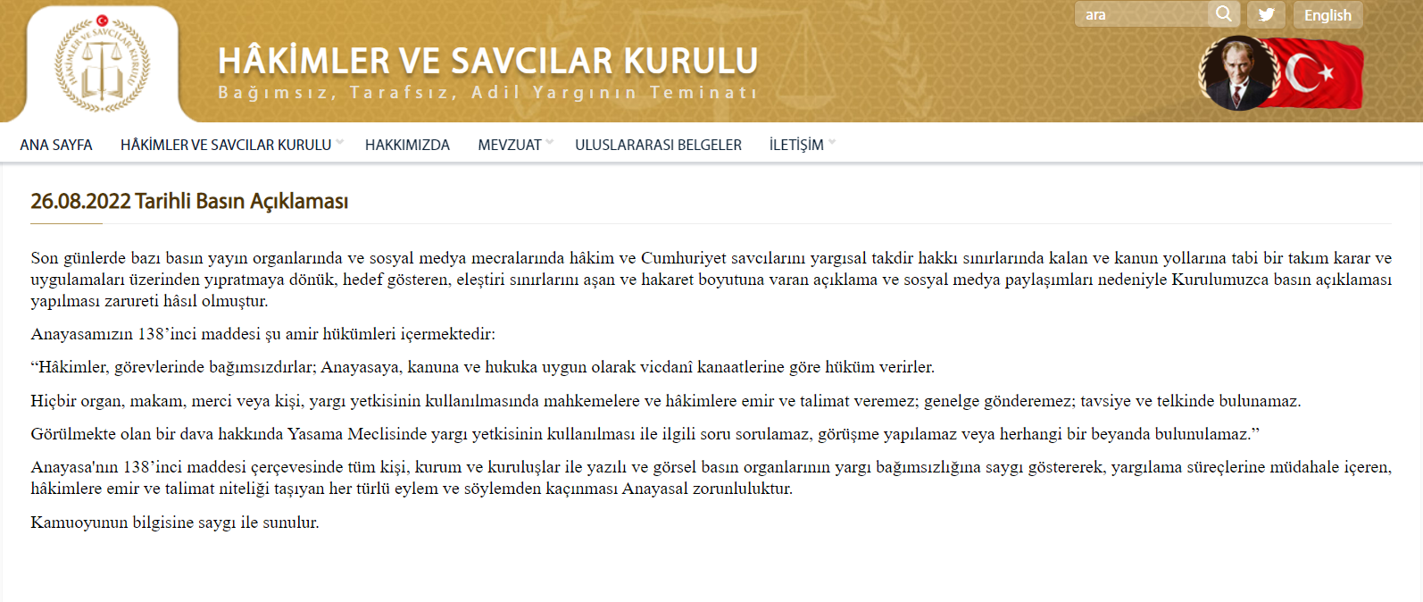 Verilen kararı eleştirenlere Hakimler ve Savcılar Kurulu (HSK), tehdit niteliğinde bir açıklamayla karşılık verdi. Bu açıklamaya göz atanlar, kararın arkasında Saray’ın sesi Adalet Bakanı Bekir Bozdağ’ın olduğunu görür.