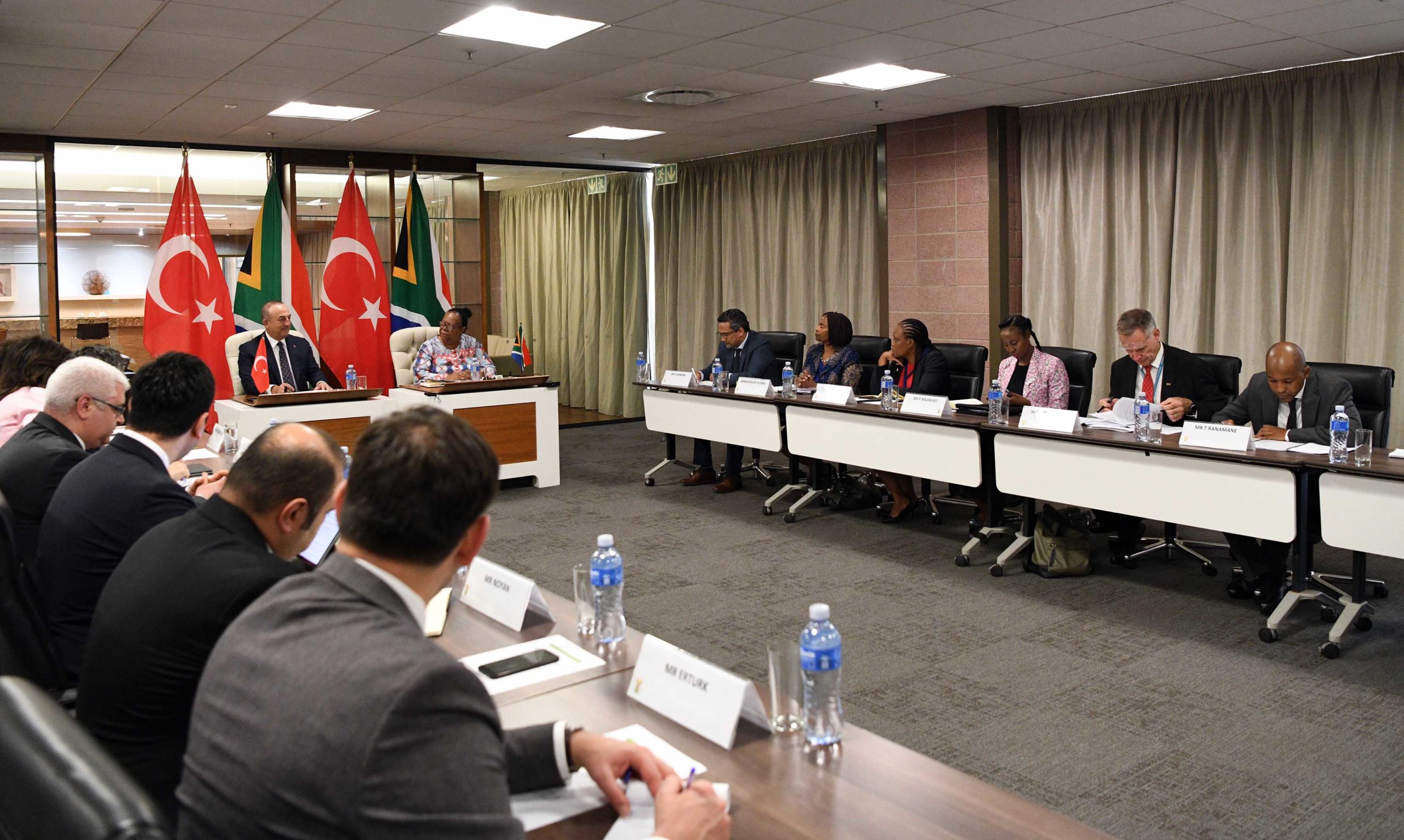 İki ülke arasındaki ticaret hacminin yüzde 50 artarak, 2022 yılında üç milyar Doları aştığını belirten Çavuşoğlu, “2023 yılında ilk ikili komisyon toplantısını Türkiye’de gerçekleştirmeyi ve Güney Afrika ile ekonomik işbirliğimizi tüm yönleriyle görüşmek üzere Türkiye’de dördüncü bir karma ekonomi komisyonu toplantısı düzenlemek istiyoruz” dedi. Güney Afrika ile bir iş forumu oluşturmanın olanaklarını konuştuklarını ifade eden Çavuşoğlu, enerji ve altyapı alanlarındaki yatırım fırsatlarını görüştüklerini sözlerine ekledi.