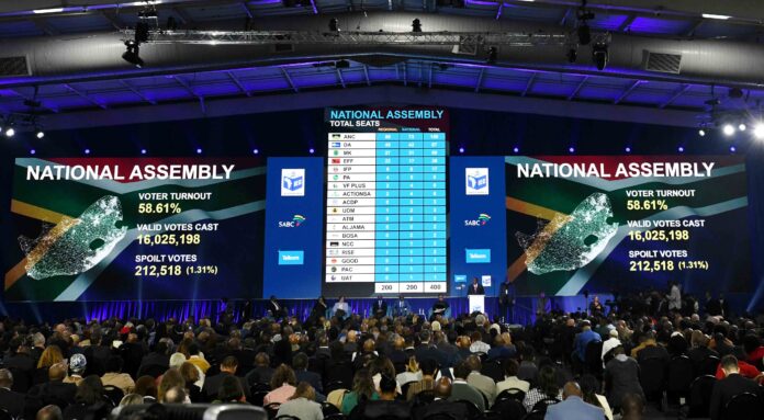 Seçim sonuçlarına göre en büyük altı partiden ANC parlamentoda 159, DA 87, MK 58, EFF 39, IFP 17 ve PA 9 vekille temsil edilecek. Güney Afrika’da seçim barajı olmadığı için bazı partiler sadece bir vekille de temsil edilecek.