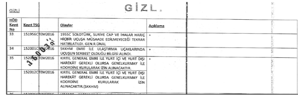 Akar bu emri saat 18.50’de veriyor: “Havada bulunan tüm askeri araçlar indirilsin” deniyor ve Türkiye’nin tüm askeri sahası kapatılıyor. Akar’ın emri üzerine Silahlı Kuvvetler Komuta Harekât Merkezinden (SKKHM) bir Albay 19.07’de Hava Kuvvetleri Harekât Merkezinden bir Yarbaya bu yasağı telefonla iletiyor.
