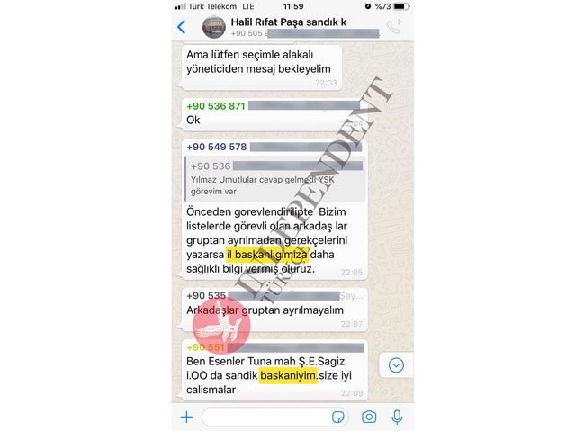 “Değerli arkadaşlar ben şişli Halil Rıfat paşa mahallesi ak parti mahalle baskanıyım sizlerin isimleri il başkanlığı tarafından müşahit olarak bildirildi bu grup seçim sonuna kadar devam edecek siz değerli sandık kurulu arkadaşlarla irtibat amaçlı bu grubu kurduk.”