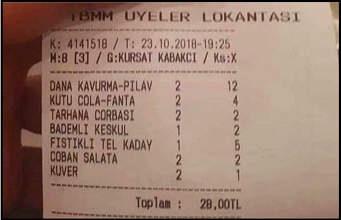 Bakın mesela şu fiş Meclis lokantası’ndan: