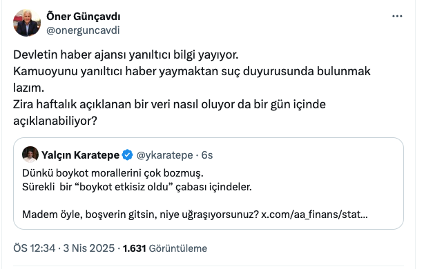 Prof. Dr. Öner Günçavdi ise şunları yazdı: “Devletin haber ajansı yanıltıcı bilgi yayıyor. Kamuoyunu yanıltıcı haber yaymaktan suç duyurusunda bulunmak lazım.