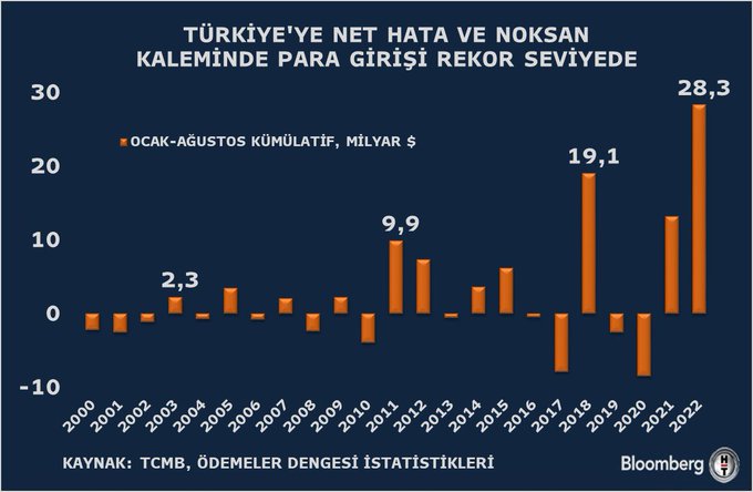 Yılbaşından bu yana ülkeye kaynağı belirsiz, resmi verilerde Net Hata Noksan (NHN) hanesindeki giren para miktarı 28,3 milyar dolar.