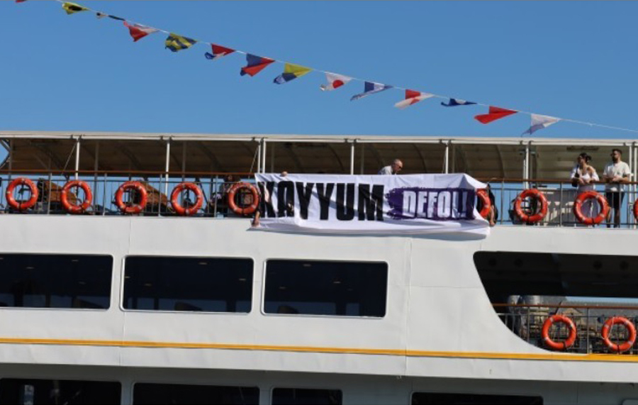 Halkların Demokratik Kongresi’ne (HDK) üye bir grup, Kadıköy’den Beşiktaş’a giden vapura “Kayyum defol” yazılı pankart astı.