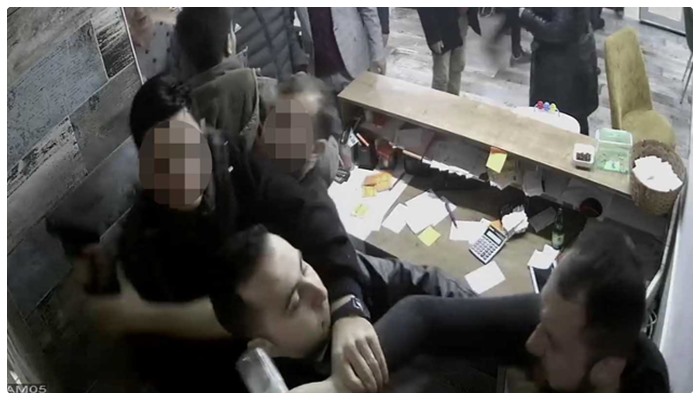 Yemeğin ardından 4 kişi hesabı ödemek için kasaya gitti. Kasada duran işyeri sahibi Fatih Taşkıran,E.E.’ye, “Elemanımızın bir kusuru mu oldu, neden tokat attınız?” diye sordu. E.E. de tepki gösterip, Taşkıran’ı yumrukladı. Taşkıran da kasanın yanındaki kolonya şişesiyle polise vurarak karşılık verdi. Arbede sırasında E.E., tabancasını çıkarıp Taşkıran’ın başına doğrulttu. Diğer polis memuru B.Ş. de garsona saldırıp dövdü. Kavga, diğer işyeri çalışanlarının araya girmesiyle güçlükle sonlandırıldı. İşyerinin güvenlik kamerasına yansıyan olay sırasında müşteriler ise korkup panik içinde dışarı çıktı.