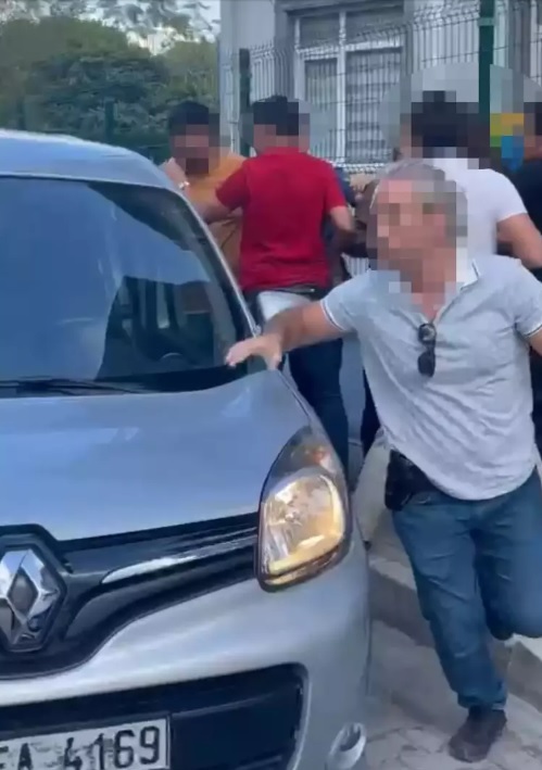 Soruşturmayı yürüten polis merkezine götürülmek üzere İlçe Emniyet Müdürlüğü’nden çıkarılan T.C., meslektaşlarının saldırısına uğradı. T.C.’yi darbeden motokuryeler, polisler tarafından uzaklaştırıldı. O anlar kameraya yansıdı.