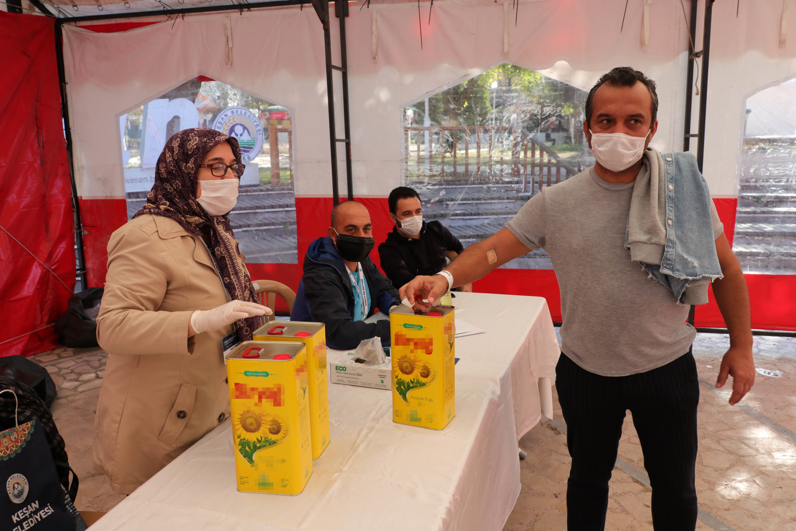 Edirne’nin Keşan ilçesinde düzenlenen ve kan bağışında bulunanlara 5 litrelik ayçiçek yağı hediye edildiği kampanyaya vatandaşlar yoğun ilgi gösterdi. AKP’li Keşan Belediyesi ile Türk Kızılay Edirne Kan Merkezi işbirliğiyle düzenlenen kampanya kapsamında kan bağışında bulunan ilk 300 kişiye belediye tarafından 5 litrelik ayçiçek yağı hediye edildi. Vatandaşlar, kanlarını vererek fiyatı yılbaşından bu yana yaklaşık yüzde 50 artan ayçiçek yağını alabilmek için uzun kuyruklar oluşturdu.