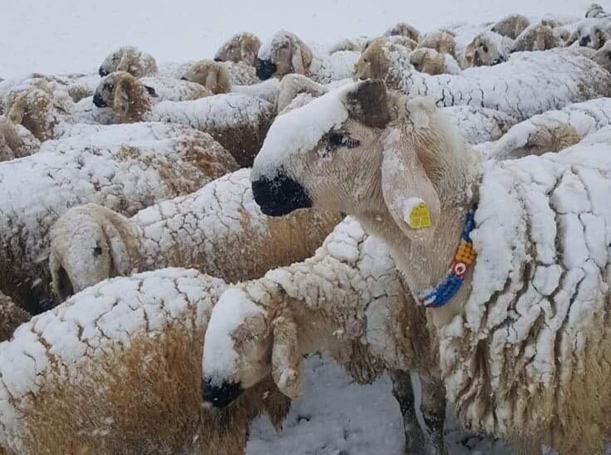 Sivas’ta hava sıcaklığının mevsim normallerinin altında seyretmesi ile yağan yağmur yüksek kesimlerde yerini kar yağışına bıraktı. Sivas’ın Altınyayla ilçesi Taşhöyük köyünde koyun sürüsünü otlatmak için meraya çıkartan Şahin Keskin’de kar sürprizi ile karşılaştı. Koyunlar ve sürüyü koruyan köpekler karla kaplandı. Keskin ortaya çıkan ilginç görüntüyü cep telefonu ile fotoğrafladı.