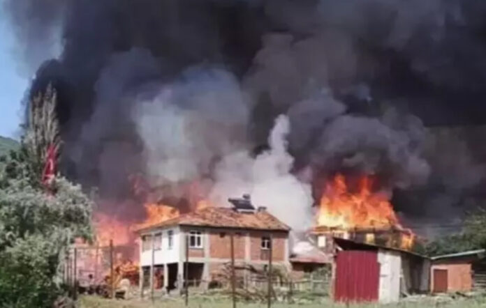 Kastamonu’nun Araç ilçesinde metruk evde çıkıp, çevreye yayılan yangında 12 köy evi, yanarak kullanılamaz hale geldi.