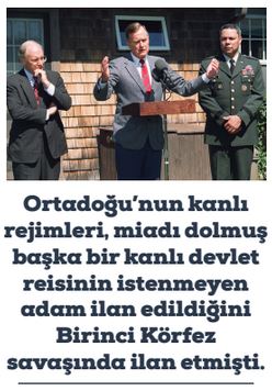 Ortadoğu’nun kanlı rejimleri, miadı dolmuş başka bir kanlı devlet reisinin istenmeyen adam ilan edildiğini Birinci Körfez savaşında ilan etmişti. ABD öncülüğünde Birleşik Krallık, Suudi Arabistan, Suriye, Mısır’ın da aralarında bulunduğu 37 ülkelik koalisyon Saddam’a karşı askeri harekât düzenlemişti. Sayılı yıllar çabuk geçti. Sonraki yıllarda adım adım Saddam’ın Irak’tan sökülüşünün ve yerine başka bir rejim inşasının serüvenine tanıklık ettik.