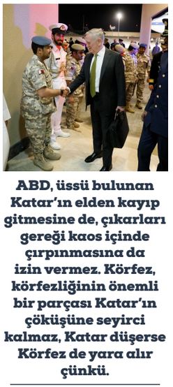 ABD, üssü bulunan Katar’ın elden kayıp gitmesine de, çıkarları gereği kaos içinde çırpınmasına da izin vermez. Körfez, körfezliğinin önemli bir parçası Katar’ın çöküşüne seyirci kalmaz, Katar düşerse Körfez de yara alır çünkü. Olsa olsa Körfez’in bu fevri çıkışının ardında, söz dinlemeyen ve çokça suça karışan Temim yönetimini değiştirmek, yerine Arap şeyhlerinin hatırını sayan güngörmüş, uslu birini getirmek olabilir.