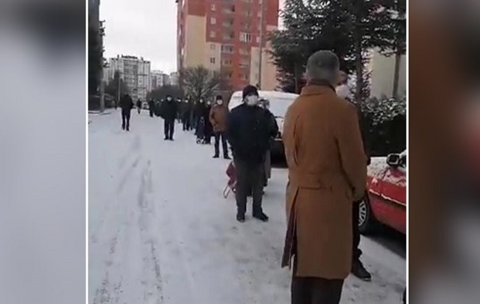 Kayseri’nin Melikgazi ilçesi İldem’de vatandaşlar -4 derecede ucuz elma almak için metrelerce uzunlukta kuyruk oluşturdu. Ucuz elma almak için kuyrukta bekleyen vatandaşlar, “Bu kuyruk yokluk kuyruğu” diyerek tepki gösterdi.