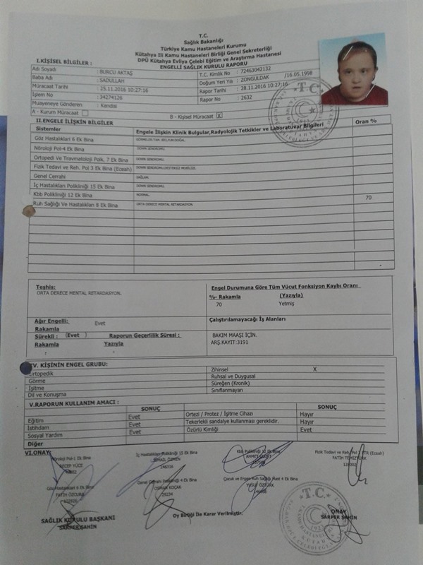 15 Temmuz sonrası çıkarılan Kanun Hükmünde Kararnameler (KHK) ile mesleklerinde hukuksuzca atılanların mağduriyetleri çocuklarına da yansıtılıyor. Bir KHK’lı kızı olan Burcu Aktaş down sendromlu. Babalı KHK’lı olduğu gerekçesiyle yüzde 70 engel oranı olmasına rağmen Burcu’ya bakım maaşı verilmedi.