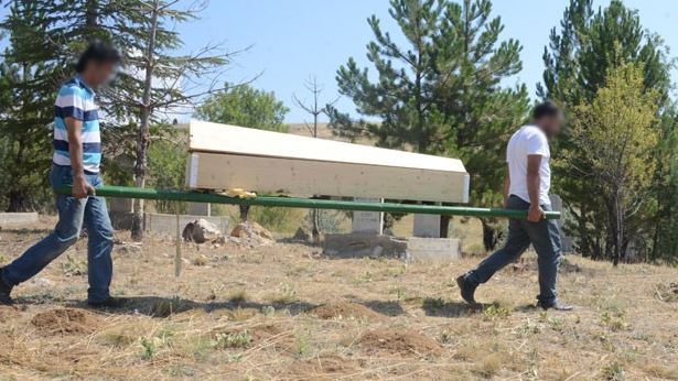 Ebatları normal dışında çok büyük olan tabutu arabaya yükleyip Konya’ya doğru yola koydular. Köy muhtarından cenazenin defni için izin aldılar, ama mezar kazmak için iki ilçe belediyesinden kepçe talep etmelerine rağmen ikisinden de olumsuz yanıt aldılar. “Ailem mezar kazımı için bir akrabamızın tanıdığından kepçe kiralayıp mezar yerini hazırladı. Cenaze namazı için imam da bulamadılar, namazı köy ahalisinden biri kıldırdı.