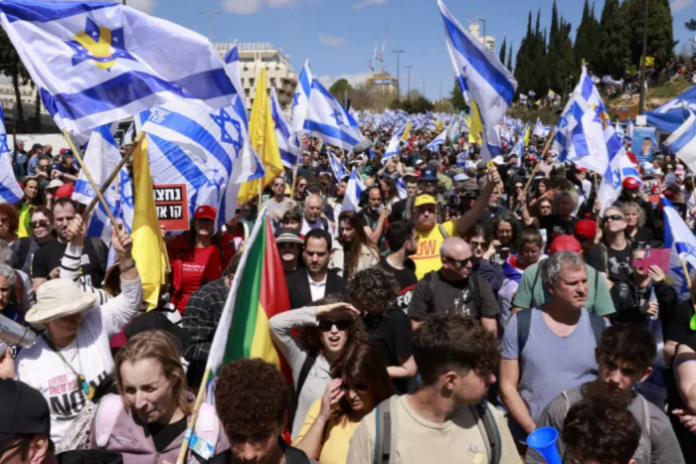 Kudüs’te Çarşamba günü toplanan binlerce protestocu, İsrail Başbakanı Benjamin Netanyahu ve aşırı sağcı ortaklarından oluşan hükümetini protesto etti.