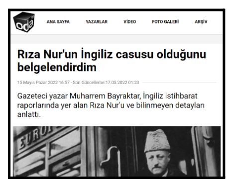1967’den 2015’e… Neredeyse 50 yıl. Yarım asır sonra nihayet birilerinin aklına geldi bu durum ve aylık Tarih dergisinin 14. Sayısında Cihan Oktay Rıza Nur dosyasına açtı. (BKNZ)