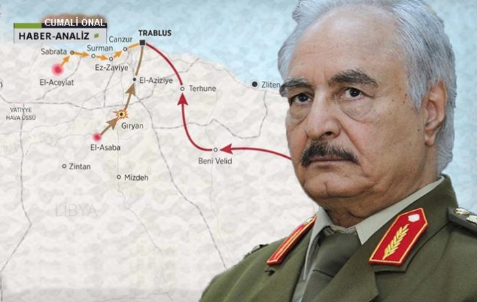 Son üç haftadır Libya’da Türkiye’nin hayal dahi edemeyeceği gelişmeler yaşanıyor. Ankara destekli milis güçler karşısında General Halife Hafter cephesi büyük bir hezimet yaşıyor. Ricat üstüne ricat.