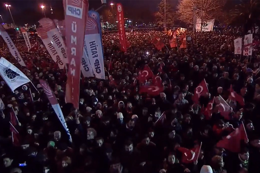 ‘‘İstanbul’un iradesine sahip çıkmak için buradayız, CHP olarak bu ülkeyi sahipsiz bırakmadık asla bırakmayacağız. Anayasamıza sahip çıkmak, onun uygulanmasını sağlamak için buradayız. Bu hakkı herkesin kullanabilmesi için buradayız. Ekrem İmamoğlu’nun hakkını savunmak ona oy veren milyonların oylarına sahip çıkmak için buradayız. İsmail Saymaz bize gazetecilik yapabilsin diye buradayız. Teğmenlerin hakkı yenmesin kahraman Türk ordusuna komutanlık yapabilsinler diye buradayız.