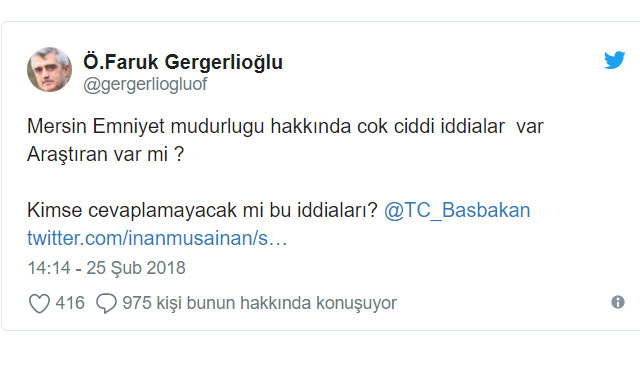 İnsan hakları aktivisti ve yazar Ömer Faruk Gergerlioğlu ise Twitter hesabından Başbakan Binali Yıldırım’ı da etiketleyerek, “Mersin Emniyet Müdürlüğü hakkında çok ciddi iddialar var. Araştıran var mı? Kimse cevaplamayacak mı bu iddiaları Başbakan?” diye sordu. Gergerlioğlu ayrıca, “Mersin… Hülya Yassıkaya’nın avukatına Emniyet’ten tutanakla “avukat istemiyor” denmiş. Avukat imzalamayıp, noter tasdiki isteyince noterin girişine de izin vermemişler. Yeni Türkiye böyle bir şey, müdafii hakkın bile gasp ediliyor..!” paylaşımı ile de yapılan işkence iddialarını kamuoyuna duyurdu.
