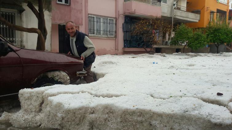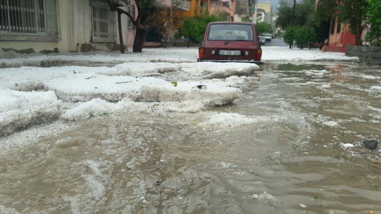 Mersin’de etkili olan dolu ve şiddetli yağış, hayatı olumsuz etkiledi. Kentte, öğle saatlerinde başlayan yağmur, bazı bölgelerde yerini doluya bıraktı. Yer yer ceviz büyüklüğünde yağan dolu, hayatı olumsuz etkilerken, Mersinliler de ıslanmamak ve doludan zarar görmemek için kapalı alanlara sığındı. Bazı araçlar, dolu nedeniyle zarar görürken, merkez Yenişehir ilçesindeki bazı araçlar da sular altında kaldı. Araçlar sulara gömüldü. Aniden başlayan dolu yağışı hayatı olumsuz etkilerken, vatandaşlar zor anlar yaşadı. Kentin özellikle yüksek kesimlerinde etkili olan dolu, bazı araçlara da hasar verdi.