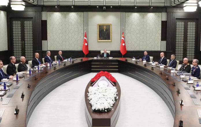 AKP’li Cumhurbaşkanı Recep Tayyip Erdoğan başkanlığındaki Milli Güvenlik Kurulu (MGK) toplantısı sona erdi. Erdoğan’ın sarayında düzenlenen toplantı, 3 saat 40 dakika sürdü. MGK sonrası yayımlanan bildiride İsveç’e yönelik NATO mesajı dikkat çekti: “NATO’ya katılmak isteyenler yükümlülüğü yerine getirmeli.”