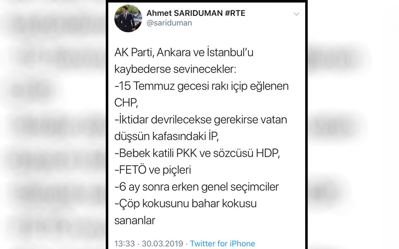 Muhalefet adaylarına ‘terörist’ diyen Ankara Halk Ekmek Müdürü Ahmet Sarıduman’ın maaşı seçimden önce 42 bin 717 liraya çıkarılmış.