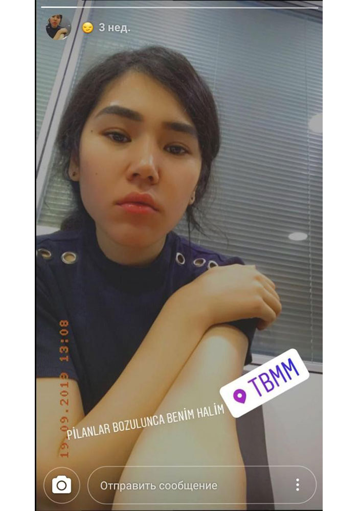 Instagram paylaşımlarına göre Kadirova pek çok kez, vekil Ünal’ın TBMM’deki makamında da bulunmuş. Kadirova’nın Instagram hesabındaki paylaşımlara göre ölümünden üç gün önce, 19 Eylül’de, Meclis’te olduğu görülüyor. Genç kadın paylaştığı fotoğrafın üzerineyse şu notu yazıyor: “Planlarım bozulunca benim halim.”