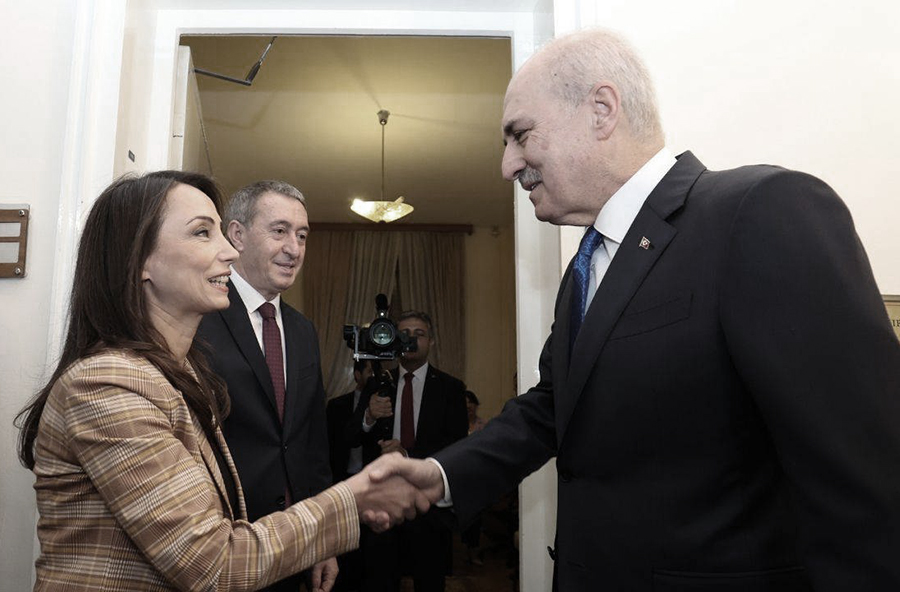 Türkiye Büyük Millet Meclisi (TBMM) Başkanı Numan Kurtulmuş DEM Parti’yi ziyaret etti. Kurtulmuş’a AKP Grup Başkanı Abdullah Güler, AKP Grup Başkanvekili Leyla Şahin Usta ve diğer yetkililer eşlik etti. Kurtulmuş’u DEM Parti Grup Başkanvekilleri Gülüstan Kılıç Koçyiğit ve Sezai Temelli karşıladı.