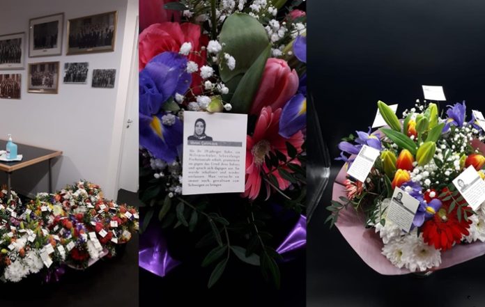 Gönderilen buketlere Türkiye’de OHAL sonrası hak ihlaline uğrayan kadınları temsilen bazı isimlerin fotoğrafı ve çektikleri sıkıntıları anlatan kartlar eklendi.