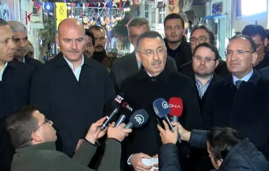 Beyoğlu İstiklal Caddesi’nde 6 kişinin hayatını kaybettiği patlamayla ilgili konuşan Cumhurbaşkanı Yardımcısı Fuat Oktay, ”Kadın olduğunu değerlendirdiğimiz bir saldırganın bombayı patlatması sonucu oluşan bir terör eylemi olduğunu değerlendiriyoruz.” dedi.