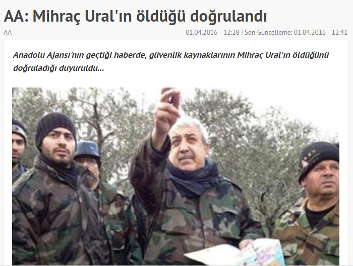 Suriye Mukavemeti – Liva İskenderun Halk Kurtuluş Cephesi’nin lideri Mihraç Ural’ın daha önce defalarca Suriye’de öldürüldüğü iddia edilmişti.