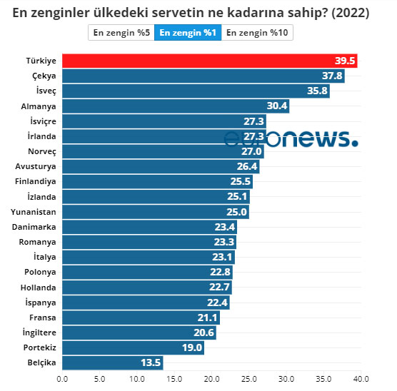 Bu anlayışın sonunda ülkenin geldiği nokta çok açık. TÜİK verilerine göre ülkede zengin daha zengin, fakir daha fakir olma yolunda ivme kazanmış durumda. En zengin yüzde 1’lik kesim, ülkedeki servetin yüzde 40’ını elinde tutuyor. Bu rakamlarla Türkiye, Avrupa’daki servet dağılımı adaletsizliğinde ilk sırada yer alıyor.