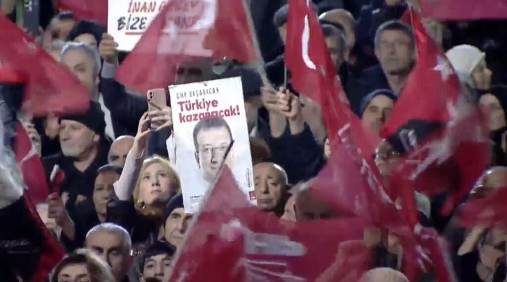 Buradan bir kez daha Erdoğan’a diyorum ki yalanların çökmüştür, iftira siyasetin çökmüştür ve bu millet artık yalanlara toktur. Cesaretin varsa 16 milyon İstanbullu’nun karşısına 29 Mart’ta çıkarsın. Daha çok cesaretin varsa erken seçim yaparsın. Korkaklığın sonu yok. İftiracılığın sonu yok. Arkadaşlarımız masumdur. Televizyon yayınından bile kaçan, canlı yayından korkanlar, iftiracılarına artık güveni kalmayanlardır. Buradan şunu bir kez daha söylüyorum ki bu kara düzene teslim olmadık, olmayacağız. Çok vurdular. Yıkılmadık, yıkılmayacağız. Bir adım geri atmayacak, bir santim eğilmeyecek, bir kelime eksik konuşmayacağız. Çünkü biz haklıyız. Arkadaşlarımız haklı. Cesaretimiz tam. Biz bu ülkeyi kurtaran kadrolarız, bir kez daha kurtaracağız. Buradan, bu akşam bu meydanı izleyen Silivri’ye, bu meydanı izleyen Gebze’ye, Bolu’ya, Afyon’a, Antalya’ya, İzmir’e selam olsun. Yıllardır yatan Gezi tutsaklarına da iftiradan içeride olan başkanlara da selam olsun. Bütün yiğitlere, bütün aslanlara… Maçkalı Murat Çalık’a… Allah gani gani rahmet eylesin, Maçkalı hemşerisinden gelsin. Ekrem Başkan’a, tüm başkanlara, haksız yere hapishanelerde yatan tüm yiğitlere, tüm aslanlara gelsin. Yiğidim, aslanıma gelsin. Hepinizin önünde saygıyla eğiliyorum. Bağcılar’da bu Yiğidim Aslanım, bu sıfırın altındaki soğukta, Ocak ayının sonunda, gecenin bu vaktinde, bu heyecanla, bu iştahla, yürekle söylendi ya. Ekrem Başkan, hiç ama hiç unutma. Çıkınca ilk mitingi yapacağız Bağcılar meydanında. Buradan başlayacağız. Kaldığımız yerden devam edeceğiz. Hep beraber iktidara yürüyeceğiz. Ekrem Başkan çıkana kadar onun yerine Cumhurbaşkanı adaylığına var mısınız? Her birinizi Cumhurbaşkanı adayı olarak görüyorum. Bu göreve hazır mısınız? Kapı kapı dolaşacak mıyız? Herkesin derdini nasıl çözeceğimizi anlatacak mıyız? Oyları teker teker Cumhuriyet’in ikinci şahlanışı için toplayacak mıyız? Bir kez daha bu ülkeyi kurtarıp, bir kez daha demokrasiyi kuracak mıyız? Ekrem Başkan için ve tüm siyasi tutsaklar için yürümeye hazır mıyız? Birlikte yürüyecek miyiz? Haydi o zaman, yürüyelim arkadaşlar.”
