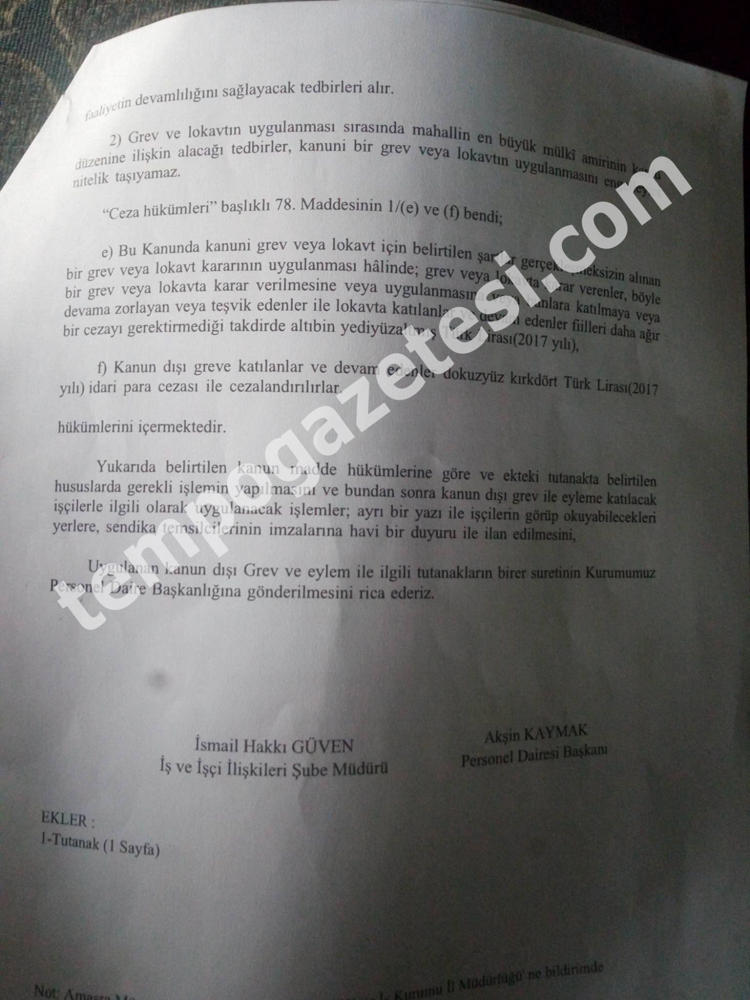 TTK’yi özelleştirecek olan Torba Kanun maddesine karşı Zonguldak’ta maden ocağında işgal başlatan maden işçilerine TTK Genel Müdürlüğü tarafından toplamda 3 milyon TL civarında para cezası uygulanacağına ilişkin tutanak tebliğ edildi.