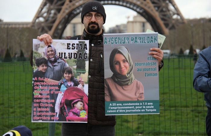 Paris’te Eyfel Kulesi öünde yürüyüş düzenleyen bir grup aktivist, Türkiye’de cezaevlerinde tutsak olan 10 binden fazla kadının sesi oldu.