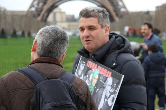 Eyfel Kulesi önünde ellerindeki pankartlarla yürüyen grup üyeleri, çevrelerindeki insanlara ülkelerinde yaşanan mağduriyetleri anlattı.