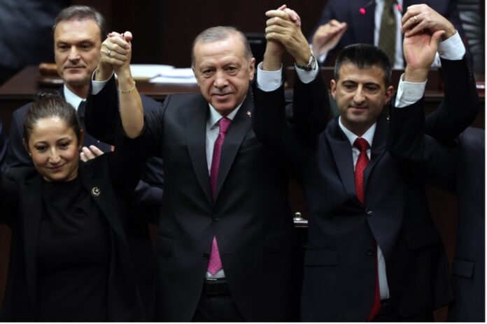 Cumhurbaşkanı Erdoğan, dün AK Parti grup toplantısında, CHP’den istifa edip Memleket Partisi’ne, oradan da ayrılıp bağımsız kalan, şimdi ise AK Parti’ye katılan İzmir Milletvekili Mehmet Ali Çelebi’ye parti rozetini taktı.