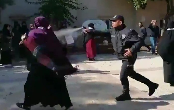 Gaziantep’te İstanbul’da Kağıthane Belediyesi tarafından yıkılan öğrenci yurdu için açıklama yapmak isteyen Furkan Vakfı gönüllülerine polis sert müdahale etti. Cami avlusunda aralarında çocukların ve kadınların da olduğu gruba biber gazı ve cop kullanan polis 20 kişiyi ters kelepçe ile gözaltına aldı.