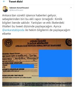 Türkiye’nin sayılı adli tıp uzmanlarından olan Adli Tıp Uzmanı Prof. Dr. Şebnem Korur Fincancı, Ankara Emniyet Müdürlüğü Terörle Mücadele Şubesi’nde işkenceye uğrayan yaklaşık 50 kız öğrenciye darp ve cebir bulgusu olmadığı yönünde rapor düzenleyen Ankara Gazi Mustafa Kemal Devlet Hastanesi’nde görevli doktor ve başhekimin işkenceye gizleyerek suç işlediğini kaydetti.