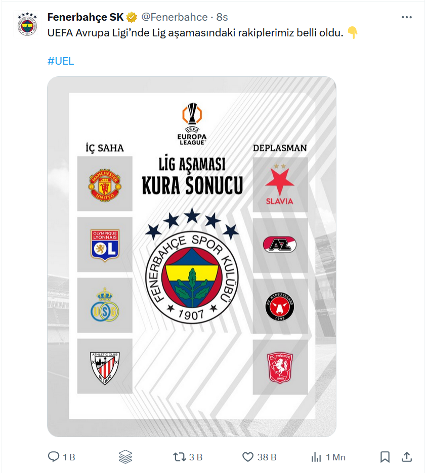 Konferans Ligi’ndeki tek temsilcimiz Başakşehir ise FC Kopenhag, Heidenheim, Rapid Wien, Cercle Brugge, Petrocub, Celje takımlarıyla puan mücadelesi verecek.