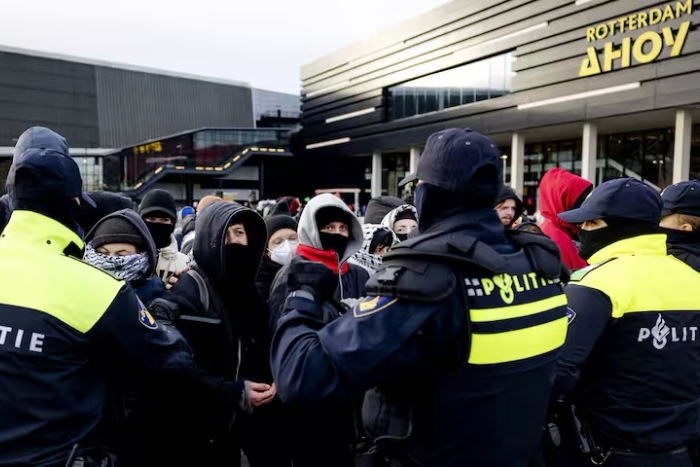 Rotterdam Polis sözcüsü, protestocular arasında Filistin yanlısı eylemciler, iklim aktivistleri ve “Savaşa Karşı Direniş Koalisyonu” üyelerinin bulunduğunu açıkladı.