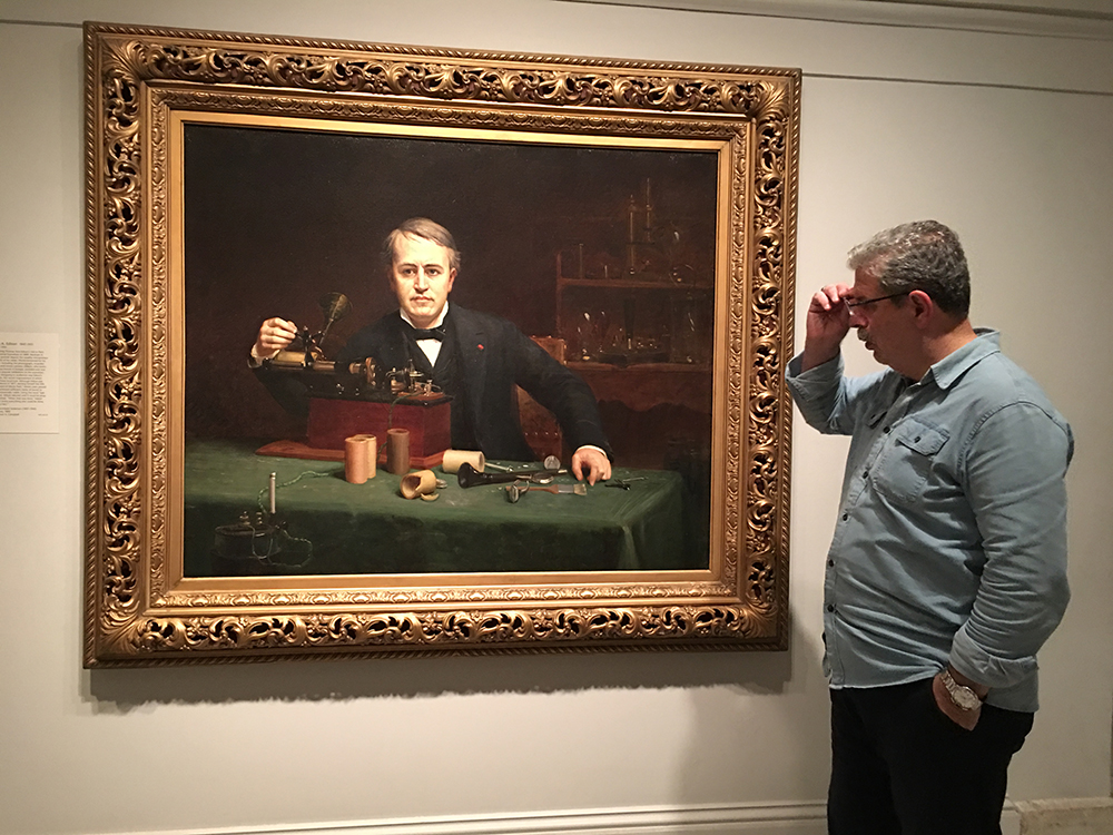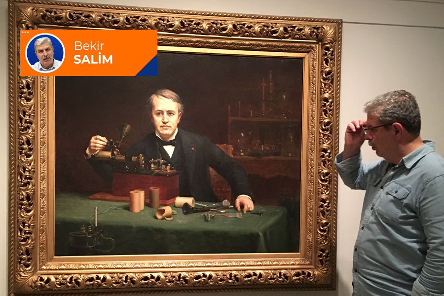 Geçenlerde Washington’da dünyanın en büyük portre müzesini ziyaret ettim. Aklın yolu bir; adamlar yüz sene evvel aynı şeyleri düşünmüşler: Aşağıda, Edison’un kompozisyonlu bir portresini ve hemen önünde portredeki objelerin camekân içinde gerçek hâllerini göreceğiniz fotoğraflar paylaştım.
