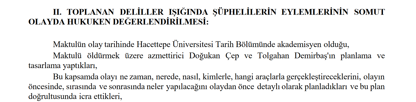 Buna göre iddianamede yar alan sanıklar şunlar: Özel harekât polisleri Aşkın Mert Gelenbey, Murat Can Çolak ile Cinayet Büro’da görevli Mustafa Ensar Aykal, tetikçi Eray Özyağcı, Vedat Balkaya, Suat Kurt, Doğukan Çep, Tolgahan Demirbaş, Zekeriya Asarkaya, MHP eski İstanbul yöneticisi Ufuk Köktürk, Mustafa Uzunlar, Osman Bayraktar, Mehmet Yüce, Çağlar Zorlu, Aytaç Ataç, Av. Serdar Öktem, Caner Günay, Emre Yüksel, Umut Ersoy, Alper Atay ve Erdem Karadeniz.