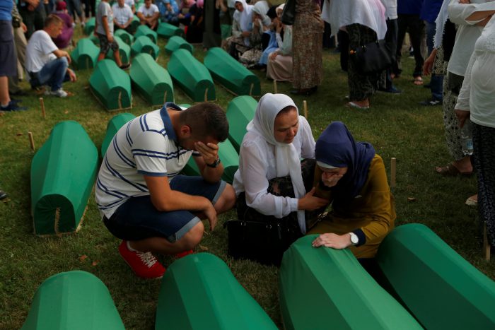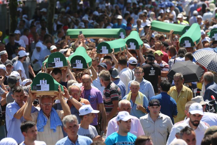Bosna Hersek’in doğusundaki Srebrenitsa’nın, 11 Temmuz 1995 tarihinde Ratko Mladic komutasındaki Sırp birlikler tarafından işgal edilmesinin ardından yapılan soykırımda katledilen ve toplu mezarlarda bulunduktan sonra kimlik tespiti yapılan Boşnak kurbanlar, öğle namazının ardından Potoçari Anıt Mezarlığı’nda defnedildi.