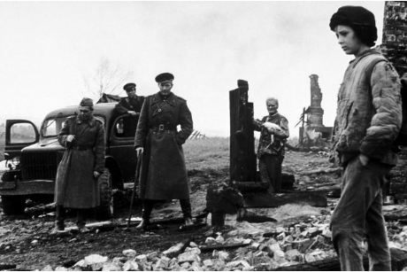 Horozlu, ihtiyar deli, elindeki tabloyu asmak için yıkıntılar arasında çivi aramaktadır. Ancak asılacak bir duvar yoktur görünürde. Bir tek kapısı sağlam kalmıştır, gerisi tam bir harabeye dönmüştür evin. Ama adam asla terk etmemiş ve terk etmeyecektir evini. İvan ona ekmek ve konserve bırakır, adam ise tanrım bu son bulacak mı der ve tahta kapısını kapatıp kilitler.