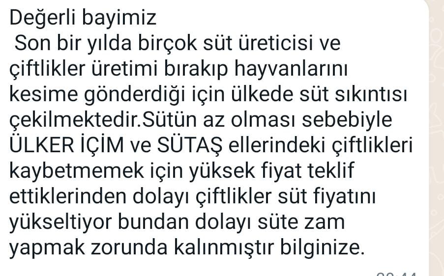 Türkiye’de iğneden ipliğe her gün yeni bir zam geliyor. Tüketici güne süte zam haberiyle uyandı. Sektör kaynaklarından alınan bilgilere göre; bu sabahtan itibaren sütün litresine 1 TL zam geldi.