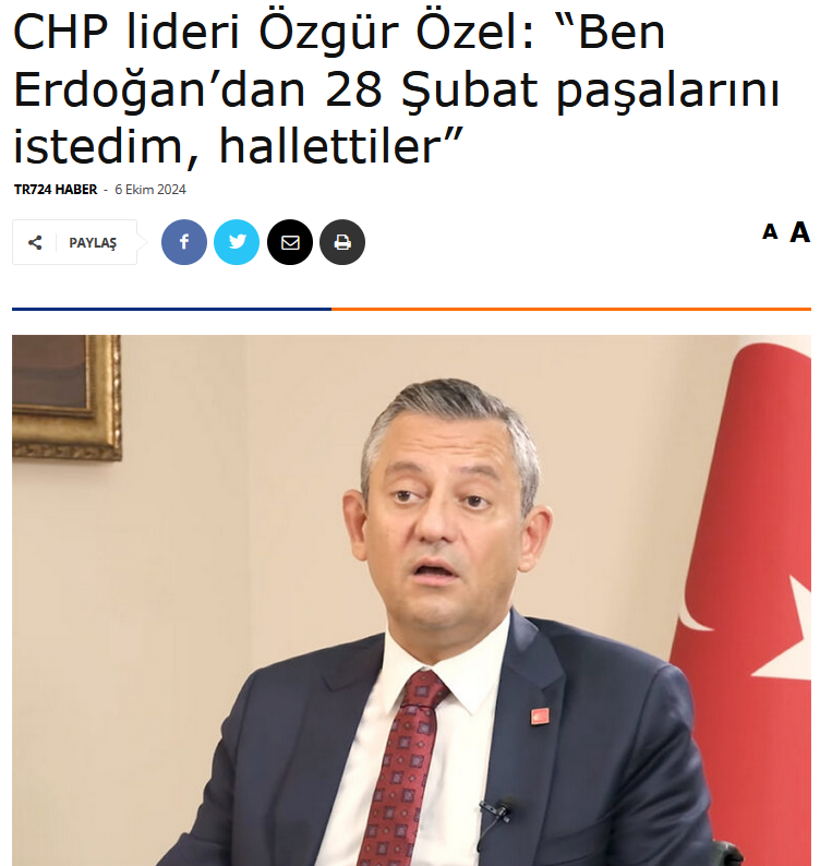 Hatırlayın, Türkiye’nin ana muhalefet partisi lideri Özgür Özel, Erdoğan’ı ziyaretinde 28 Şubat’ın darbeci paşalarının tahliyesini istediğini ve sorunun çözüldüğünü normal bir şeymiş gibi ekranlarda anlatmıştı… Ülkenin muhalefet partisi lideri bile adaleti adliye koridorlarında değil, Beştepe Sarayı’nda arıyor! Bir ülke için bundan daha vahim bir durum olabilir mi? Sonra da dönüp ‘tek adam’ rejiminden şikayet ediyorlar. İyi de bu rejimi meşrulaştıran kendileri!