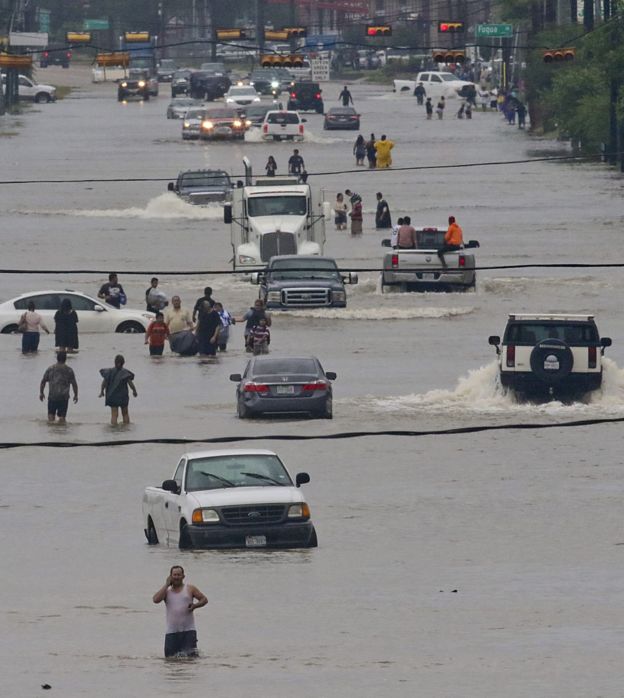 ABD’nin Teksas eyaletinin güneyini sarsan ve iki kişinin ölümüne neden olan kasırga nedeniyle ABD’nin 6,5 milyon nüfuslu dördüncü büyük kenti Houston sular altında. ABD Ulusal Kasırga Merkezi’nden yapılan açıklamada, Houston’daki selin daha önce benzerinin görülmediği belirtildi. Kentin en önemli caddelerinde seller oluştuğu ve iki önemli havalimanının da hizmet veremediği bildirildi. Okullar da 5 Eylül’e kadar tatil edildi. ABD Başkanı Donald Trump’ın da salı günü afet bölgesine gideceği açıklandı.